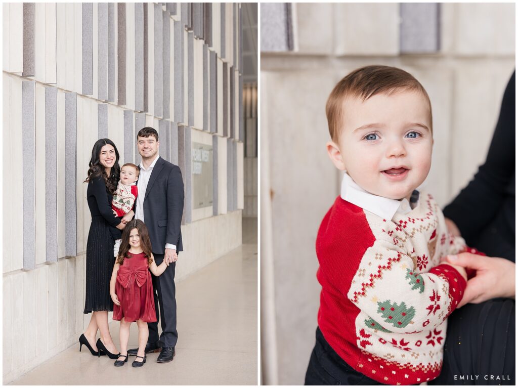 I have been so lucky to know the Walsh family for four years now! I first met them when Evelyn was a newborn and it has been so much fun to see her grow over the years. In January, I photographed baby James and now, nearing his first birthday, we got some holiday photos of their whole family.