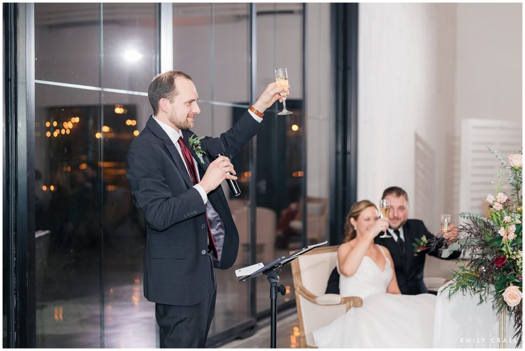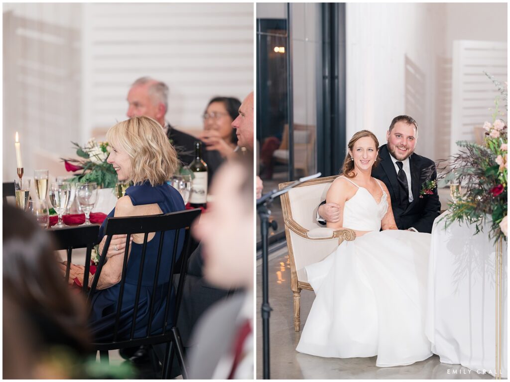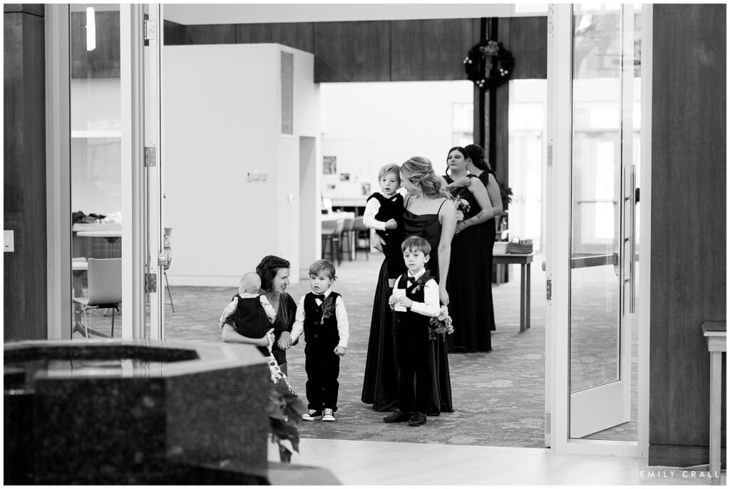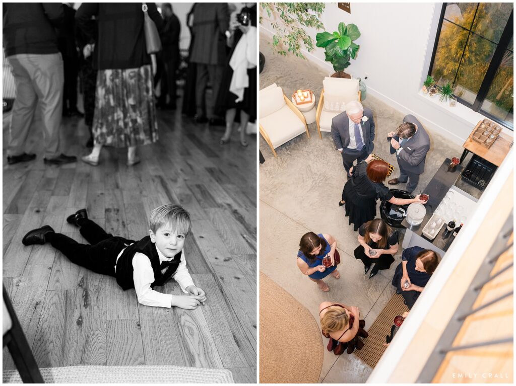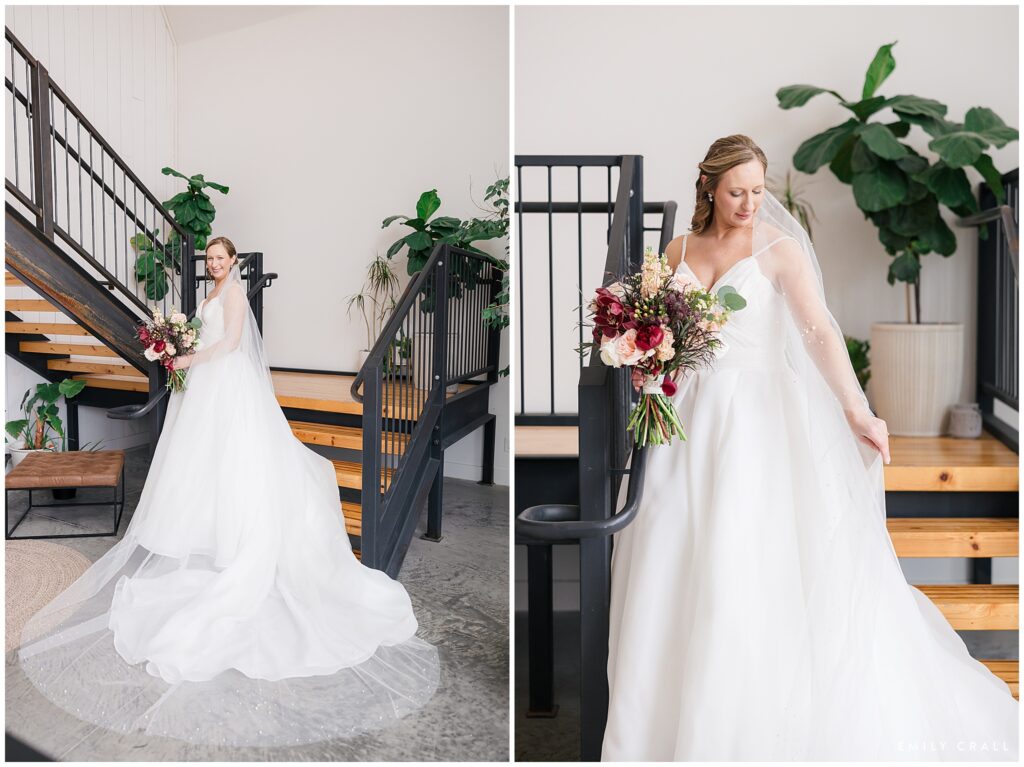 It was a windy, chilly day with the sun tucked firmly away behind the clouds. One of the things I love most about Little Lights on the Lane as a venue is that there are lots of indoor spaces both for photos and for folks to spread out and mingle when the weather is unsavory. Jacqueline and Aaron braved the cold for some gorgeous outdoor photos, but we let everyone else stay indoors.